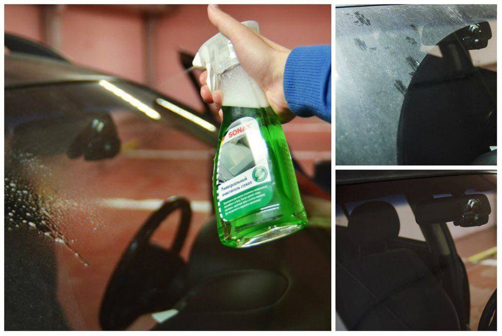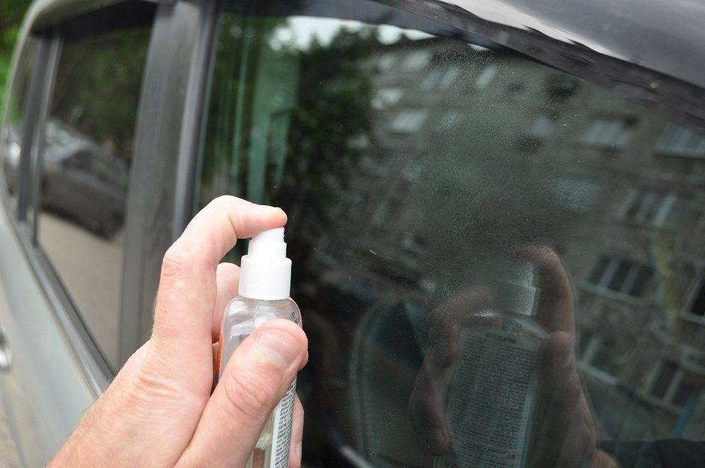 После тщательной очистки и сушки стекла можно приступить к нанесению средства. Нанесение осуществляется на небольшой фрагмент стекла — примерно 20 х 20 см. После тщательного распределения круговыми движениями нужно подождать, пока препарат высохнет. Это легко узнать по белому покрытию, которое образуется на всей поверхности стекла.