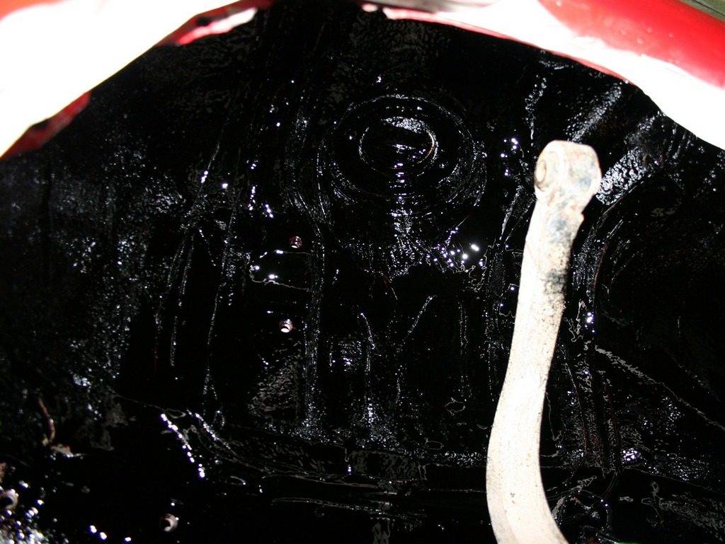 Затем последовательность действий такова: разогретая смесь наносится на подогретую поверхность. В качестве инструмента можно использовать шприц, кисть и строительный фен. При обработке помните, что рациональный принцип никто не отменял: крупные площади вроде днища обрабатываются небольшими площадками.