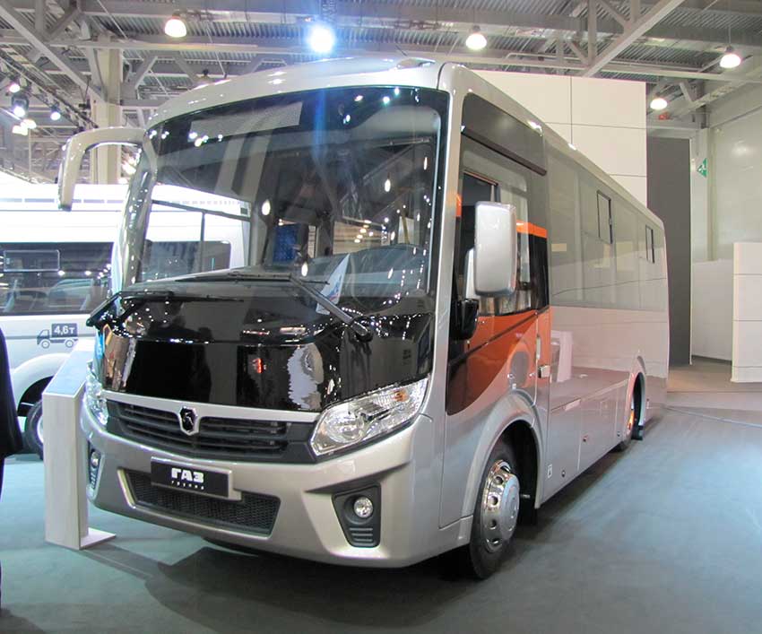 Новая модель микроавтобусов ГАЗель Next, созданная на платформе цельнометаллического фургона, предназначена для коммерческих и корпоративных перевозок. Автомобиль сочетает высокие функциональность и практичность в достаточно прогрессивном современном дизайне. В зависимости от исполнения компоновка салона ГАЗель Next Bus может располагать от 14 (туристический автобус) до 18 (городской вариант) посадочными местами, включая водителя. Вместительное внутреннее пространство с комфортным расположением сидений и отделкой из АБС-пластика предусматривает также возможность перевозки стоящих пассажиров, при этом широкий проход способствует их уверенной навигации по салону. Удобство посадки и высадки обеспечивается с помощью высокого дверного проема и автоматизированной подножки с электроприводом. По всему периметру салона ГАЗель Next Микроавтобус протянуты удобные поручни для уверенного перемещения внутри автомобиля.