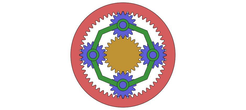 Каждая планетарная передача состоит из солнечной шестерни, водила с шестернями-сателлитами и коронной шестерни.