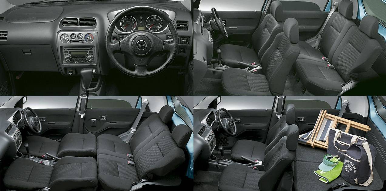 Спереди места достаточно, сзади — меньше, но не сказать что его там нет вообще. От багажника по большей части только название, с откинутой спинкой дела обстоят сильно получше, но места для пассажиров идут в жертву дополнительному пространству. В целом же пространства внутри Дайхатсу Териос Кид гораздо больше, чем кажется снаружи.