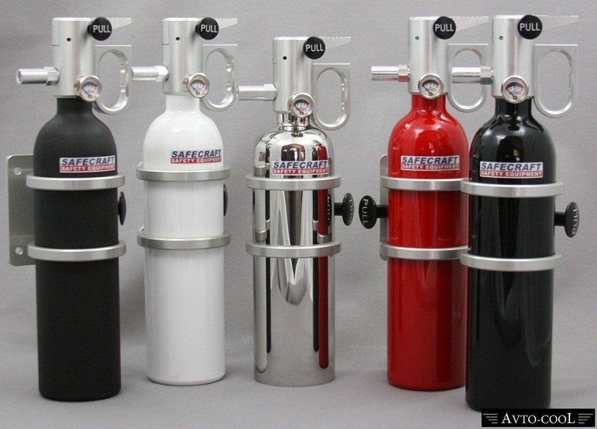 хладоновые. Принцип действия соответствует углекислотным моделям, просто основным веществом тут выступает углеводород. Среди преимуществ таких устройств можно выделить несколько меньший вес, высокую производительность, а также отсутствие вероятности ожогов и ударов током. Подходят они и для тушения подкапотного пространства, и для устранения пламени в салоне. Стоимость подобных огнетушителей достаточно высокая, правда и срок службы больше, чем у аналогов. Еще один минус состоит в их вреде для человеческого тела и окружающей среды. Если вдохнуть пары, которые производит устройство, то это может привести к негативным последствиям;