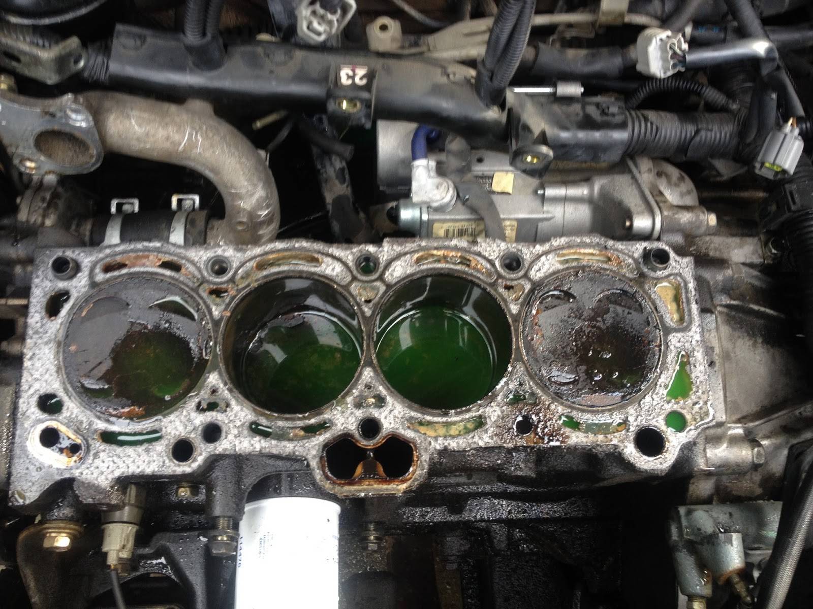 Эндоскопическое исследование или опрессовка цилиндров сжатым воздухом показывают: днища поршней, промытые антифризом, сияют чистотой, что далеко не лучший показатель.