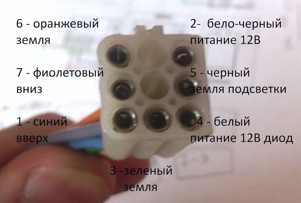 Верхние – нормальнозамкнутые, служат для реализации дистанционного управления с водительского места.Нижние – нормальноразомкнутые, служат для прямого управления с конкретной кнопки.Также есть светодиодная подсветка с собственными выводами на массу и питание, она работает при включении фар или габаритов.Все это добро выводится на семь ног разъема для подключения колодки(в моем случае пайки).