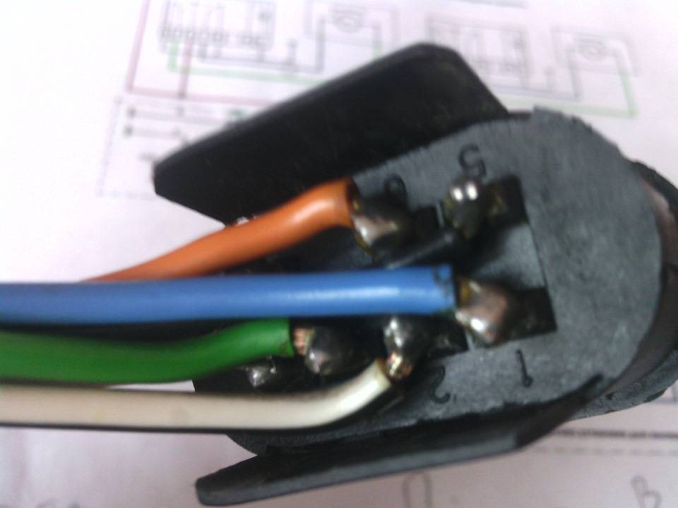 Отдал, 180 рублей и со спокойной душой поехал домой, ставить, делов то, снять ручку, выдернуть старую кнопку из колодки, посадить новую, а вот фиг! Старая кнопка оказалась без колодки для подключения! Вот так на ней все припаяно к штекеру: