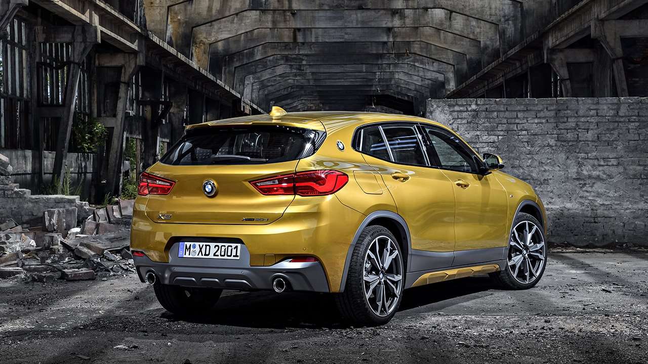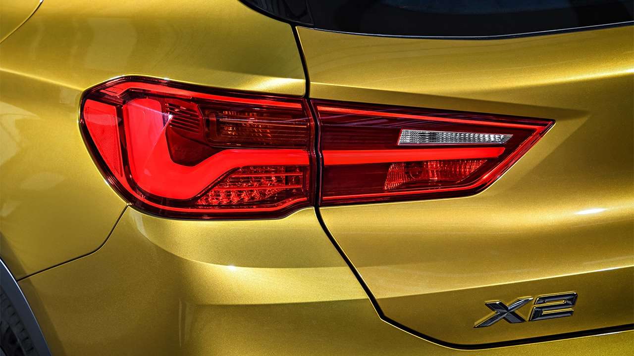 Сзади кроссовер получил новые фонари с диодными элементами габаритов. Смотря немного сбоку, обнаруживаешь красивый переход верхней глубокой линии к фаре. Крышка багажника – уникальная часть с рельефными линиями сверху и снизу. Крышка стыкуется с бампером, а ручка интегрирована в логотип бренда БМВ Х2 2019-2020. Наверху находится спойлер с дополнительным стоп-сигналом с неокрашенными стойками. Спойлер – это опциональное удовольствие.