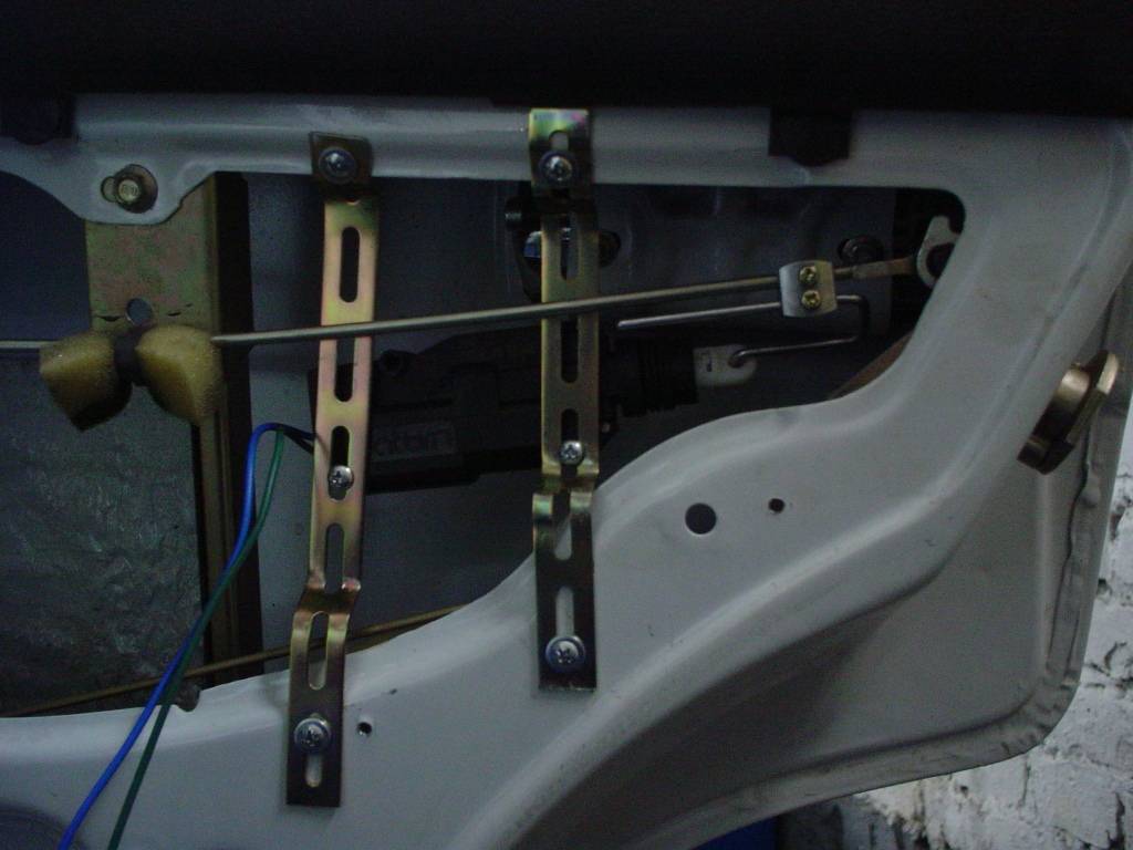 - Подсоединить тяги набора к тяге замка дверей. Если великовата длина, то допускается небольшой изгиб.