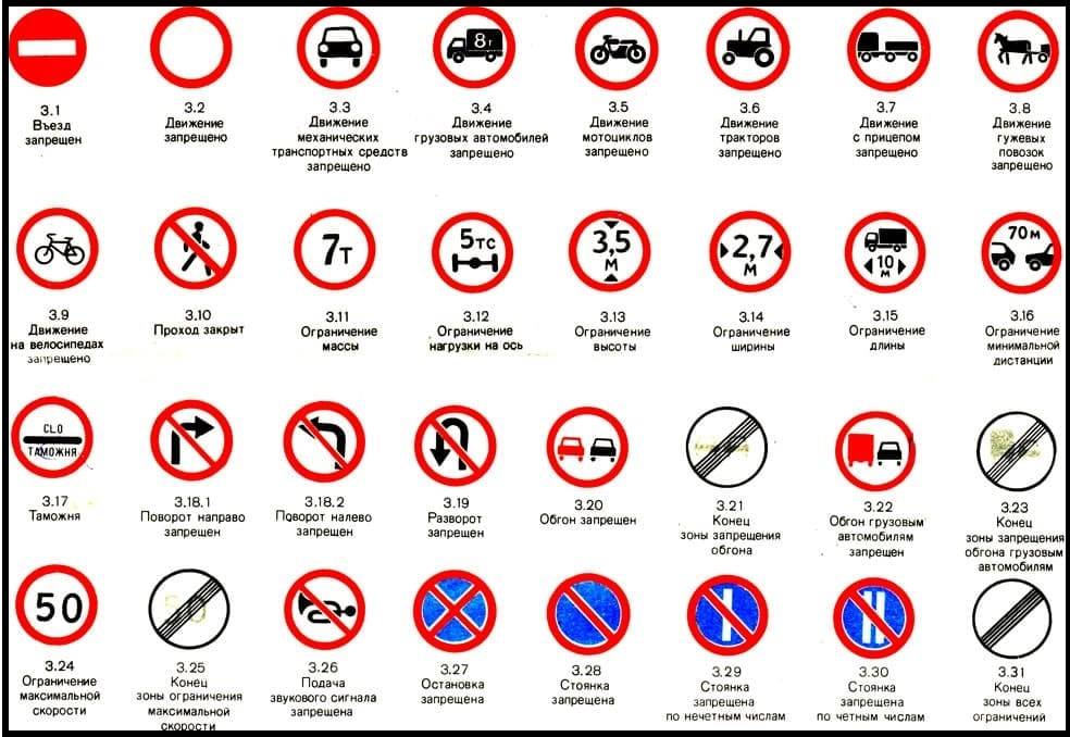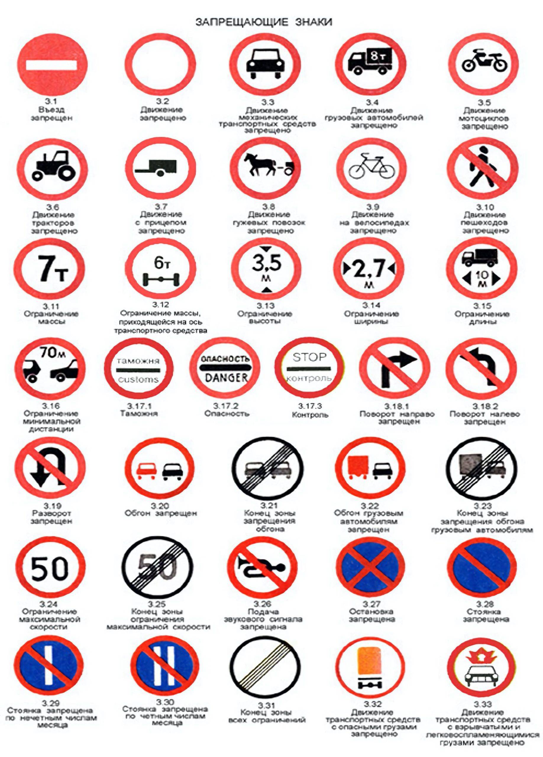 Знаки этой довольно многочисленной группы вводят запреты и ограничения. Запрет подразумевает, что дальнейшее движение невозможно. Ограничение позволяет продолжать движение, но с соблюдением определенных условий.