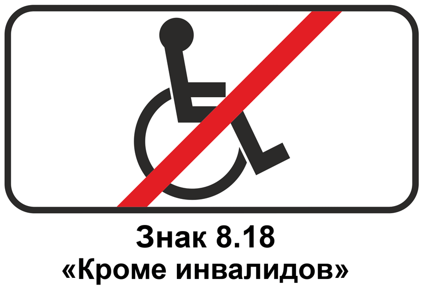 При этом не предусмотрено накладывание штрафа за остановку авто, управляемых инвалидами, если знак дополнен соответствующей табличкой (8.18) – графически отображена инвалидная коляска, перечеркнутая красной линией.