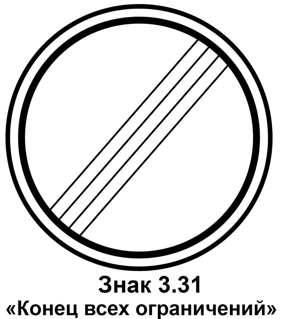 - Знак отмены всех введённых ограничений 3.31 (пять наклонных слева направо чёрных полос на фоне белого круга).
