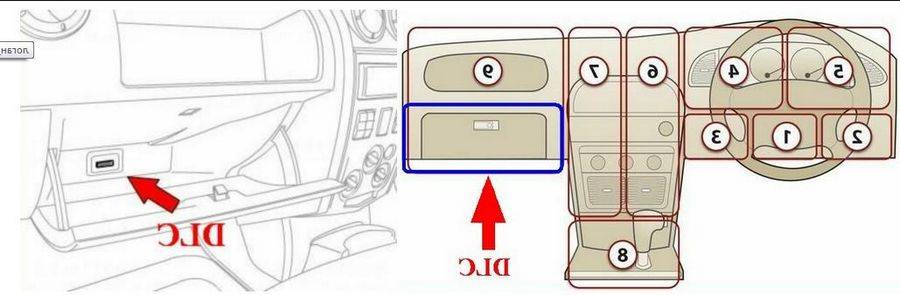 либо на задней стенке вещевого ящика (бардачка) автомобиля (к примеру на Рено Логан) за пластиковой крышкой