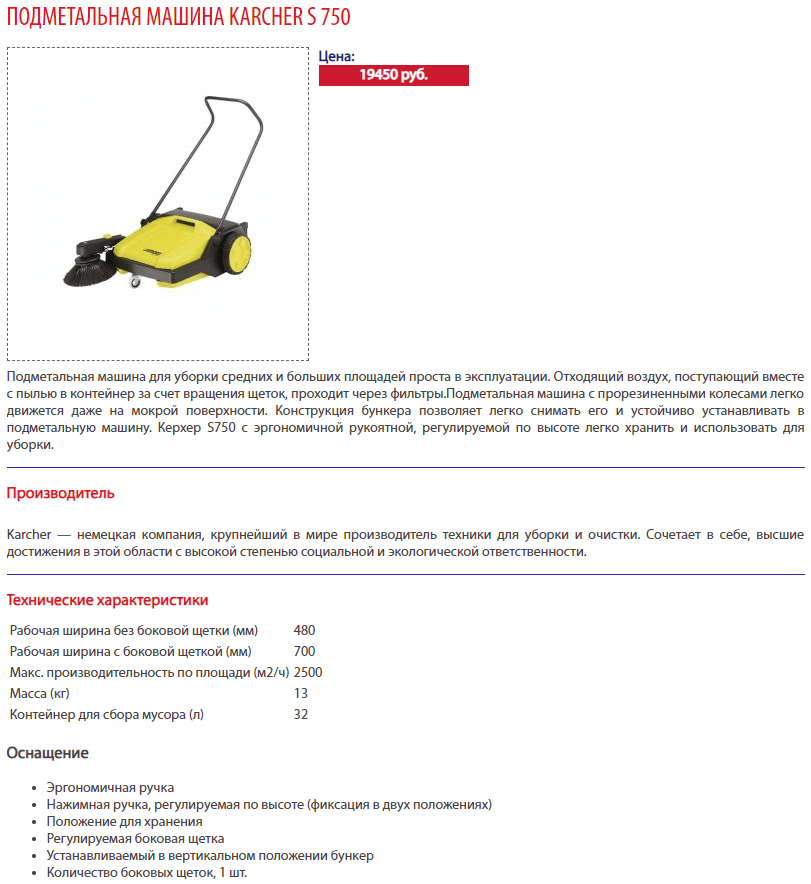 Лидером по производству и продажам подметальной техники, безусловно, является компания Karcher, предлагающая высококачественные универсальные машины со многими функциями.