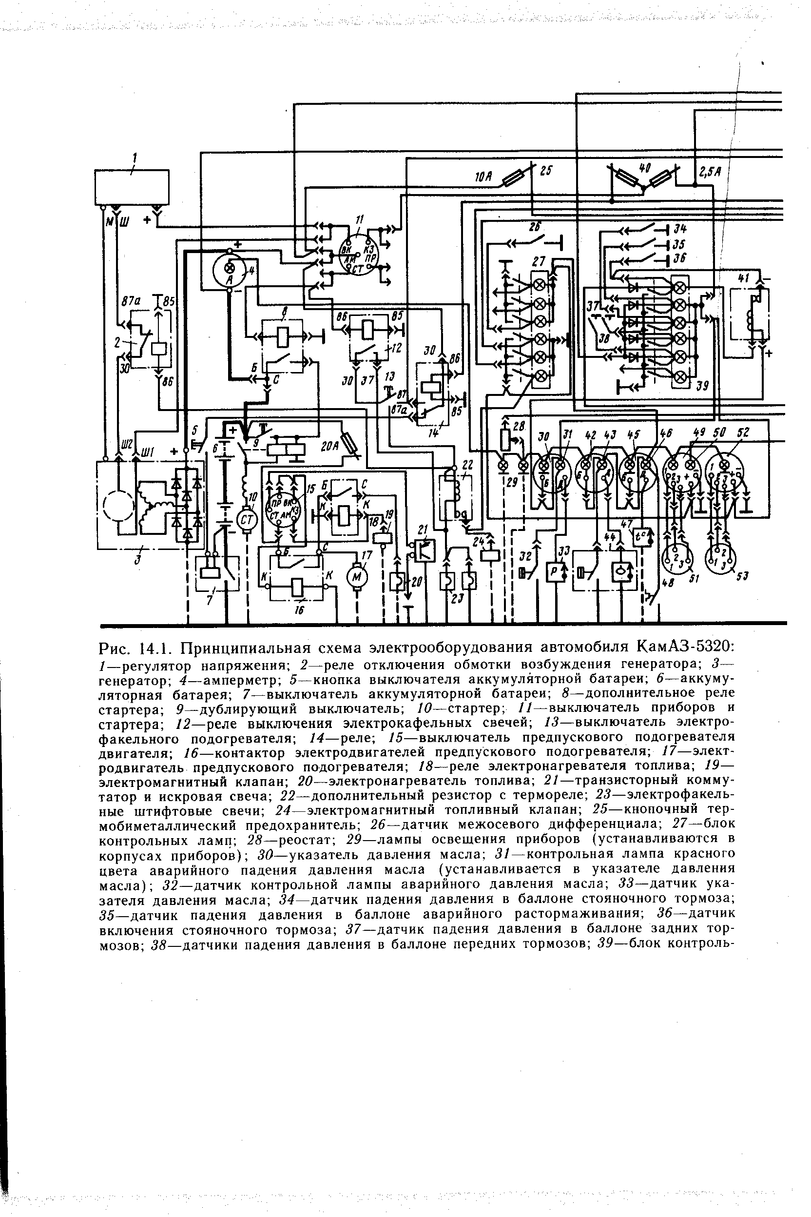 Автомобильные провода имеют различный цвет для облегчения нахождения их в пучке. Однако некоторые графические обозначения незначительно могут отличаться, встречаются как цветные, так и чёрно-белые элементы в схеме. В этом случае все потребители имеют номинальное напряжение 12 В, генератор 14 В, а стартер 24 В. Поэтому при эксплуатации автомобиля следует соблюдать ряд правил, в том числе и противопожарной безопасности. Расположение изделий на схеме должно определяться их фактическим расположением на автомобиле.