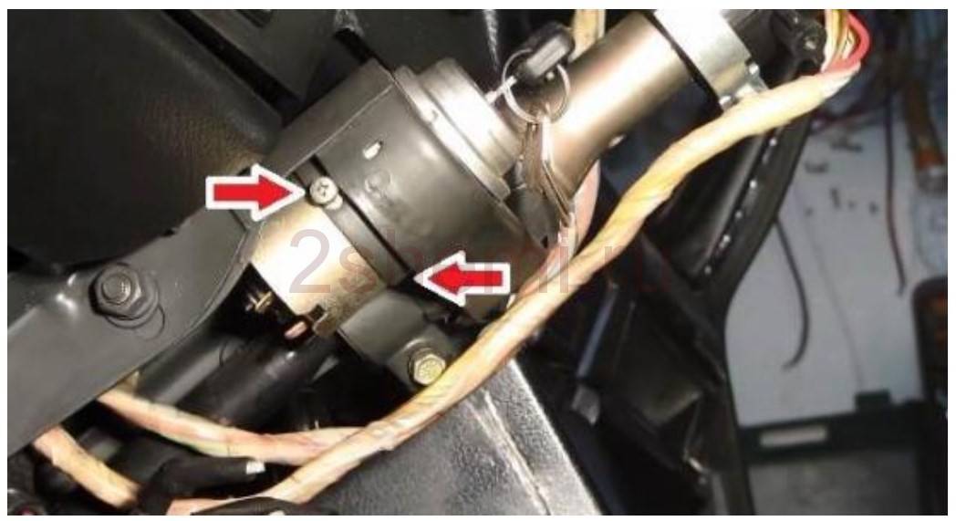 - Затем откручиваем два винта крепления замка зажигания к кронштейну.
