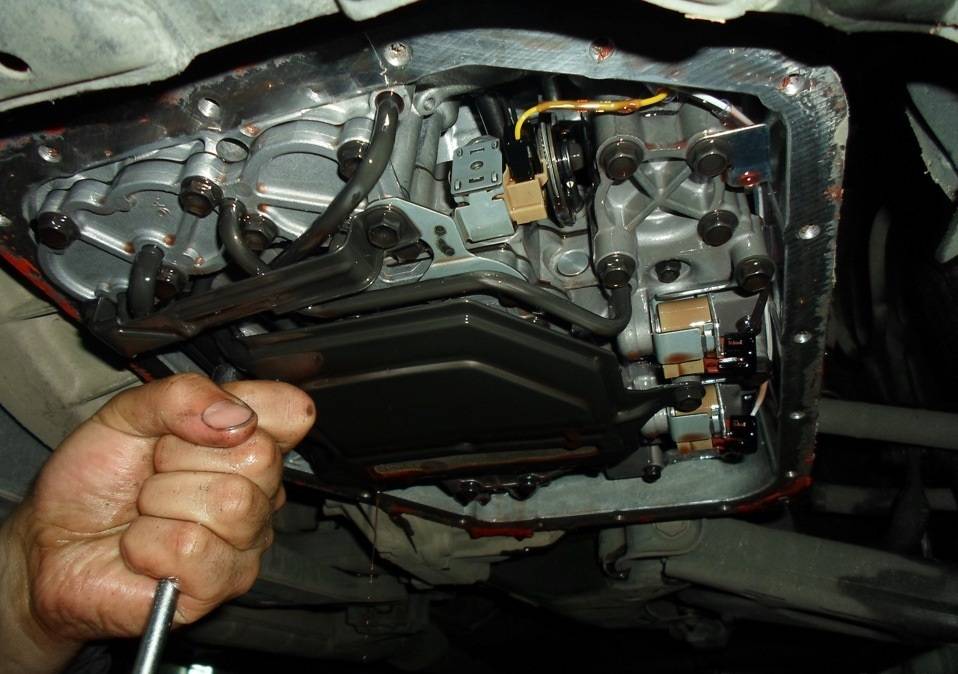 - При необходимости снятия АКПП с автомобиля – снимаем коробку, разбираем до необходимых пор, находим фильтр и откручиваем его.