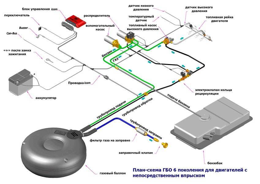 Пятое поколение позволяет доставлять пропан до камеры сгорания в исходной жидкой фазе. Это возможно благодаря насосу, который встроен в баллон.