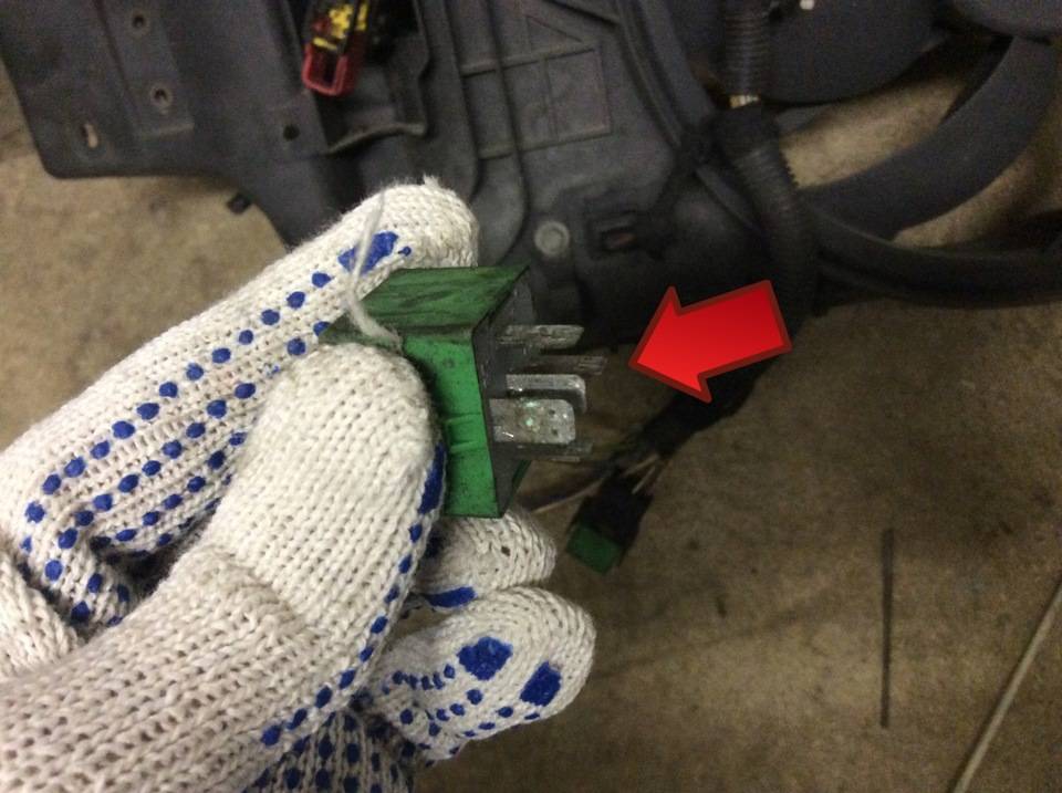 Так же чуть правее на фото виден разъем резистора малой скорости вентилятора, который тоже очень часто выходит из строя. Его тоже необходимо обязательно проверить.