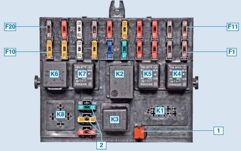 Таблица предохранителей и реле основного блока Нивы Шевроле