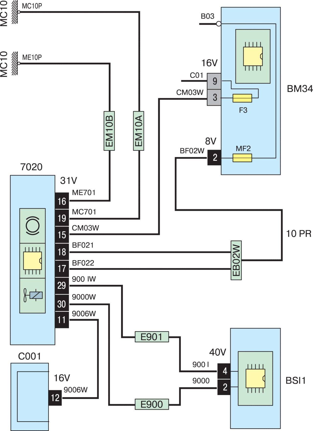- (70A) Блок предохранителей / релейная пластина, фасция (F9-F12 / F16), многофункциональный модуль управления