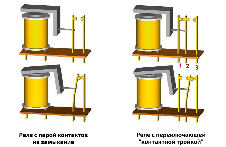 На последок не помешает прозвонить контактную группу. Разбираясь, для чего нужно реле, становится понятно, что это – электромеханический переключатель. При подаче тока, он замыкает два контакта и передает ток дальше. Выглядит это так.