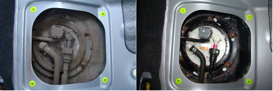 Во многих современных автомобилях местом расположения бензонасоса является топливный бак. При этом демонтировать деталь можно только через технологическое отверстие, которое находится над баком.