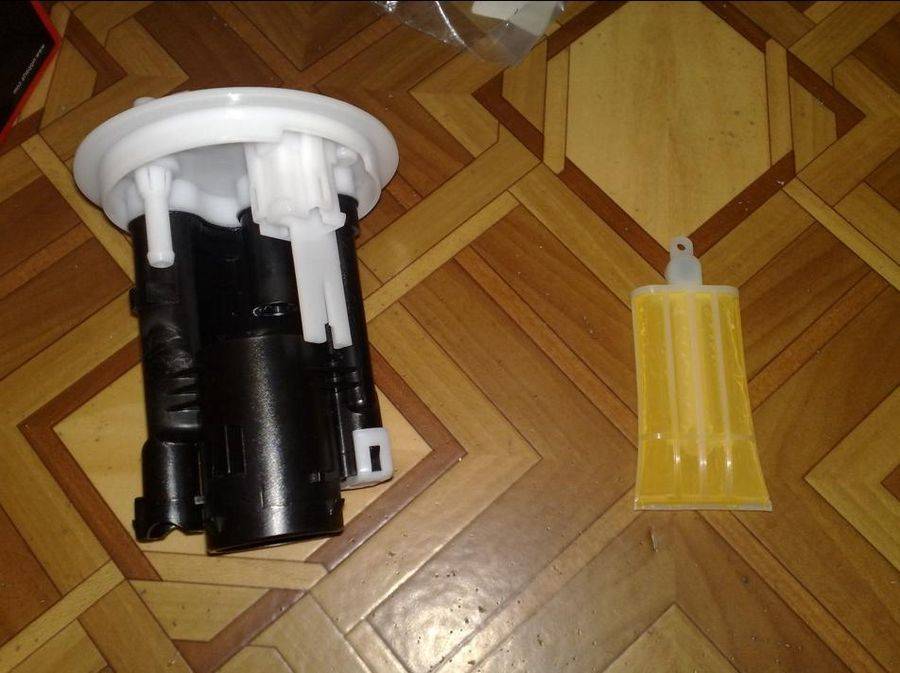 6. Теперь необходимо разобрать фильтр, а именно извлечь бензонасос с фильтром грубой очистки и установить его в новый купленный фильтр. Не забудьте почистить фильтр грубой очистки. Если он будет в очень грязном состоянии, рекомендуется сменить заправку и конечно же фильтр.