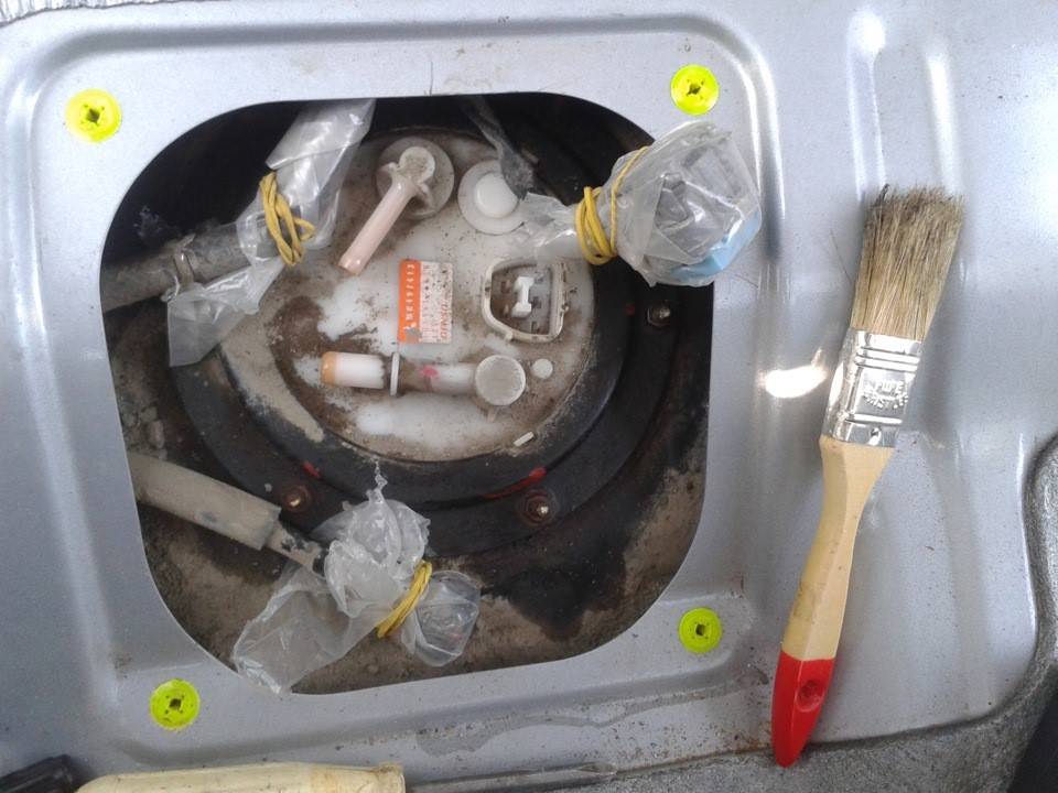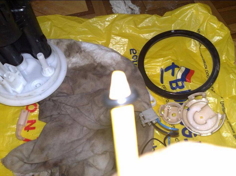 После демонтажа насоса необходимо проверить загрязненность на днище бака. Оптимальный вариант, когда в баке будет минимальный уровень топлива. Тогда с помощью натуральной ветоши можно удалить остатки бензина и скопившуюся грязь.