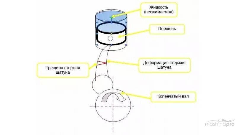 Как происходит гидроудар двигателя