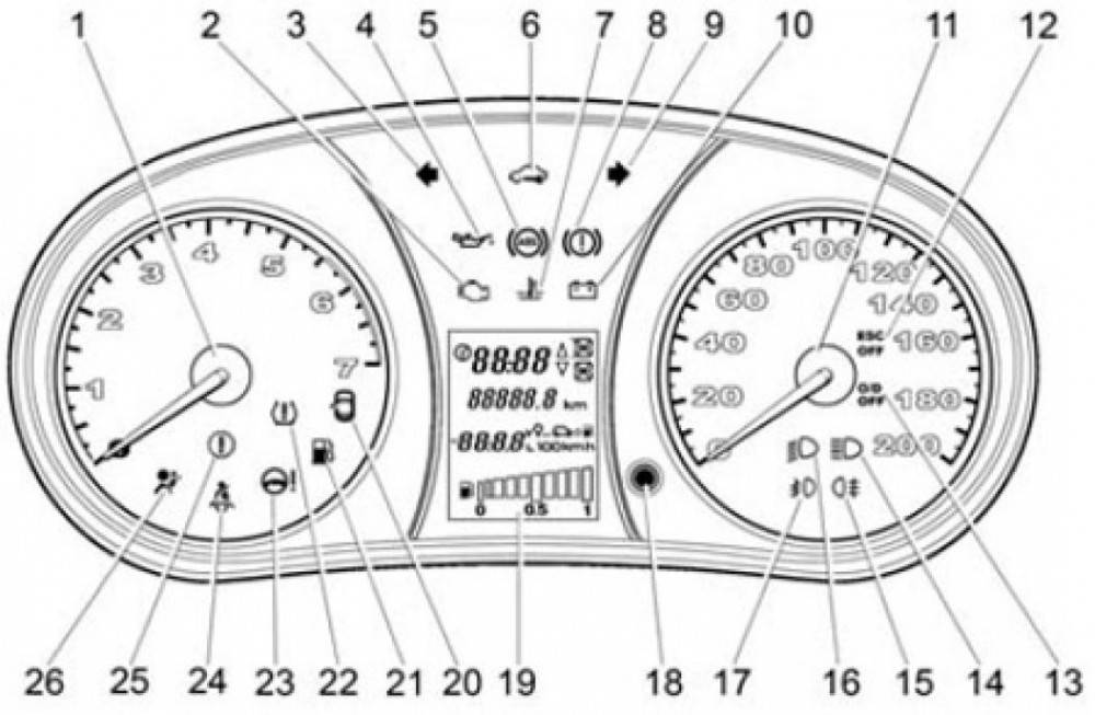 Очень просто: вставьте ключ в замок зажигания и заведите автомобиль, если значок в виде автомобиля на комбинации приборов (см. на рисунке под цифрой 6) светится в течении 15 секунд и гаснет – то иммобилизатор НЕ активирован!