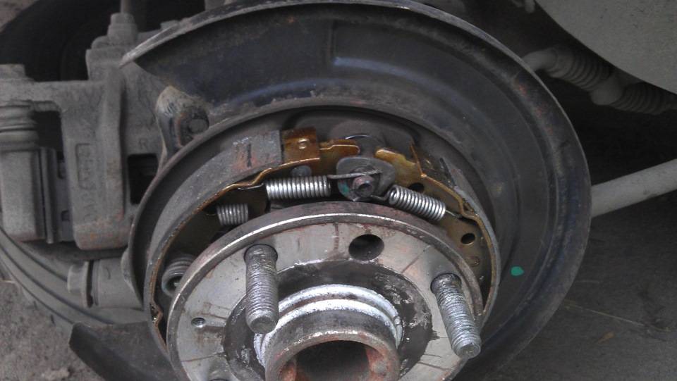 Замена колодок производится после снятия заднего колеса и барабана. Далее необходимо вместе с выступом разобрать пружины и кронштейны. Сняв замок, можно отсоединить трос.