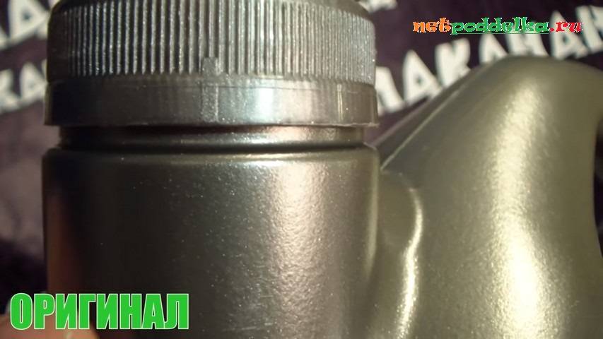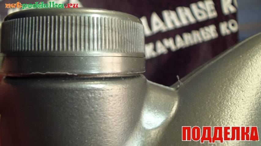 Часто мошенники не заморачиваются с повторением рельефа рёбер крышки, делая их более узкими, или забывают выполнить гравировку бренда. На подделках крышка часто удерживается не за счёт стопорного кольца на пломбе, а банально с помощью клея. Может быть и наоборот — когда крышка болтается и масло начинает капать, если перевернуть канистру вверх дном.