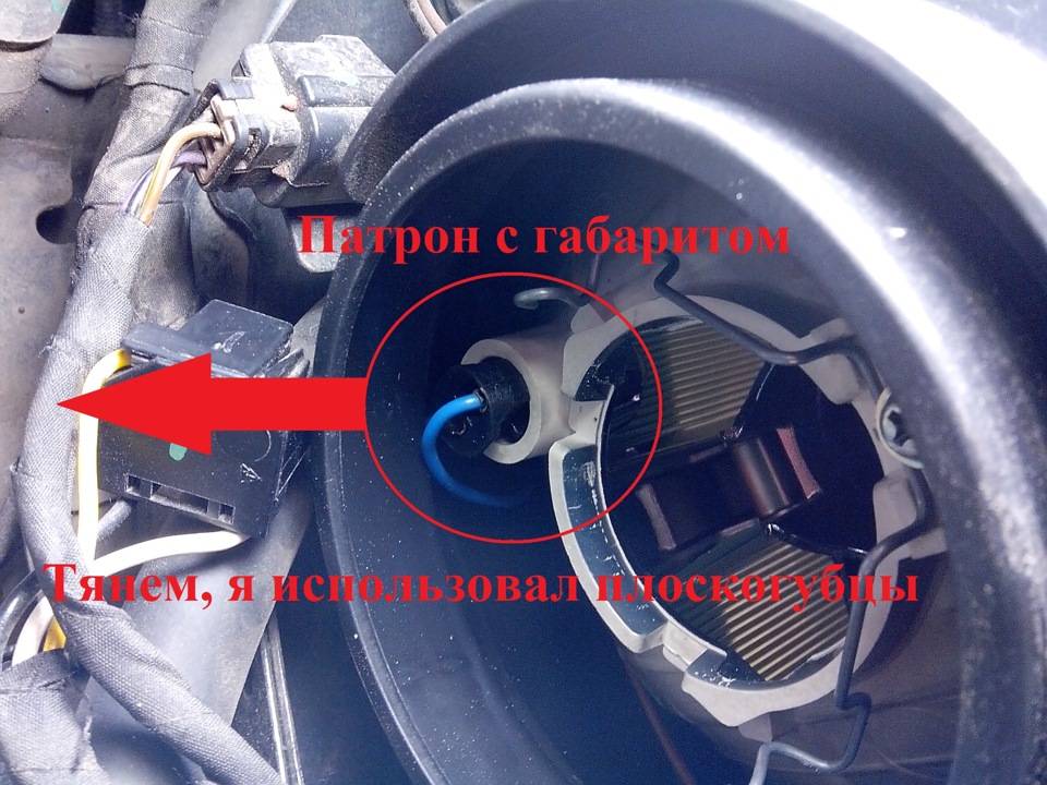Первым делом отсоединяем разъем. Просто вытягивайте его и всё. Сидеть он может очень плотно, тяните замена лампочки габаритов шевроле круз, но только не за провода. Горлышко резиновой заглушки плотно облегает цоколь. Стягиваем её, не боимся. Под замена лампочки габаритов шевроле круз наблюдаем цоколь, он прижат скобами. Сжимаем их пальцами, пока они не выйдет из пазов. Направление сжатия показано на рисунке красными стрелками. Скобы можно освобождать по очереди. После того как скобы сняты, вытаскиваем старую лампочку и устанавливаем новую.