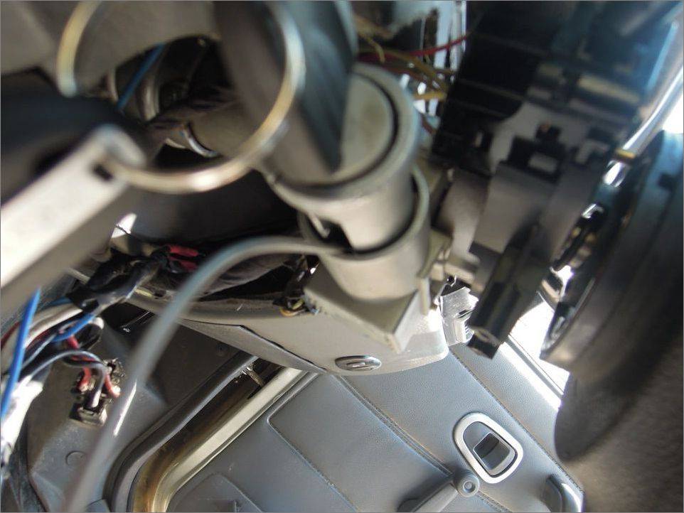 Мы уже сняли оба кожуха рулевой колонки и контактную группу, осталось только вынуть старую и установить на место новую личинку. Из инструментов нам потребуется только металлический стержень толщиной 2-4 мм (подойдёт шестигранный Г-образный ключ, проволока, загнутая буквой Г, на худой конец, обычная большая скрепка или булавка). Приступим.