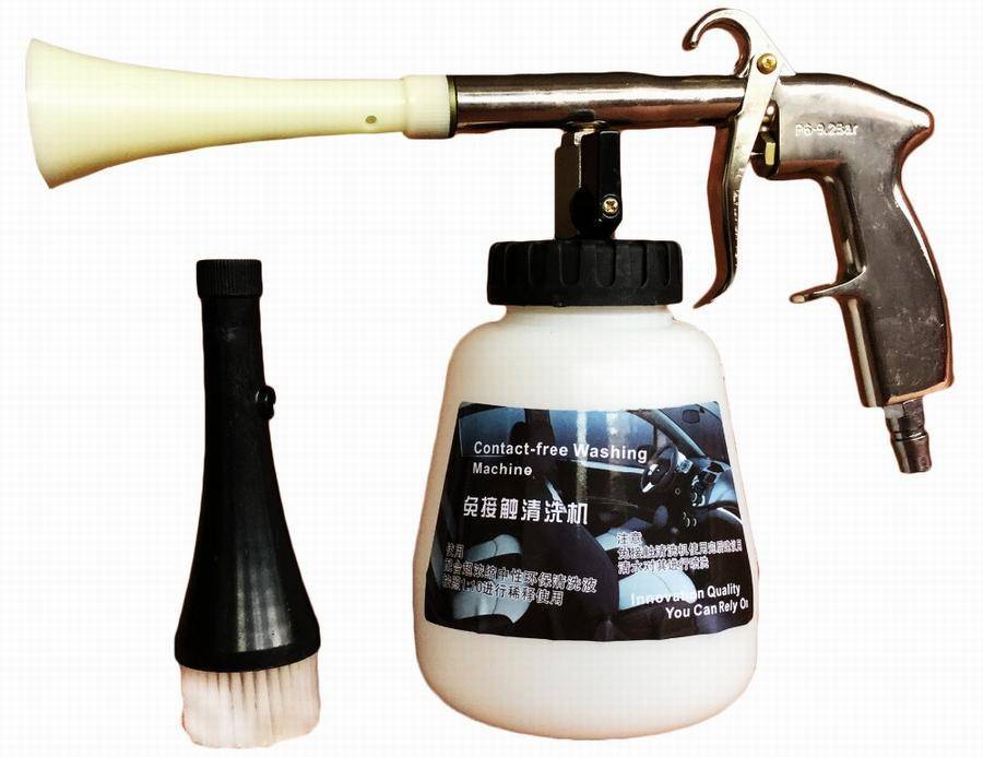 Существенно упростит процесс пистолет для химчистки салона автомобиля, они бывают разной ценовой категории. Пистолеты эффективны за счёт подачи воздуха в тандеме с очищающим средством, поэтому хорошо убирают грязь и убивают микробы.