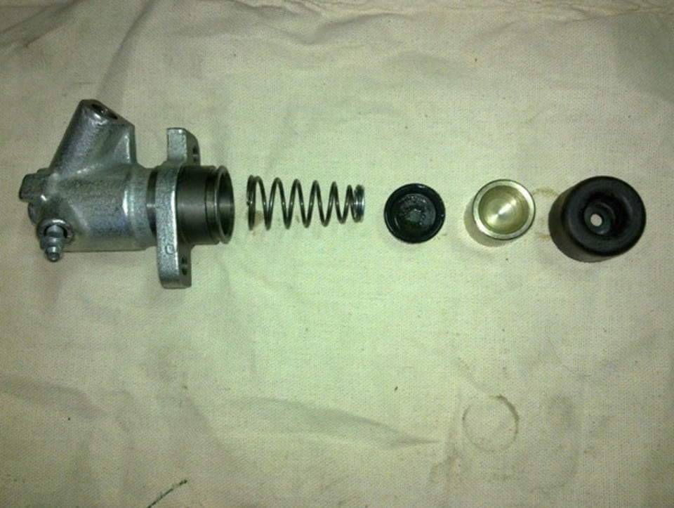 - открутить 2 фиксационных болта рабочего цилиндра, снять вместе с креплением пружины, используя плоскогубцы;