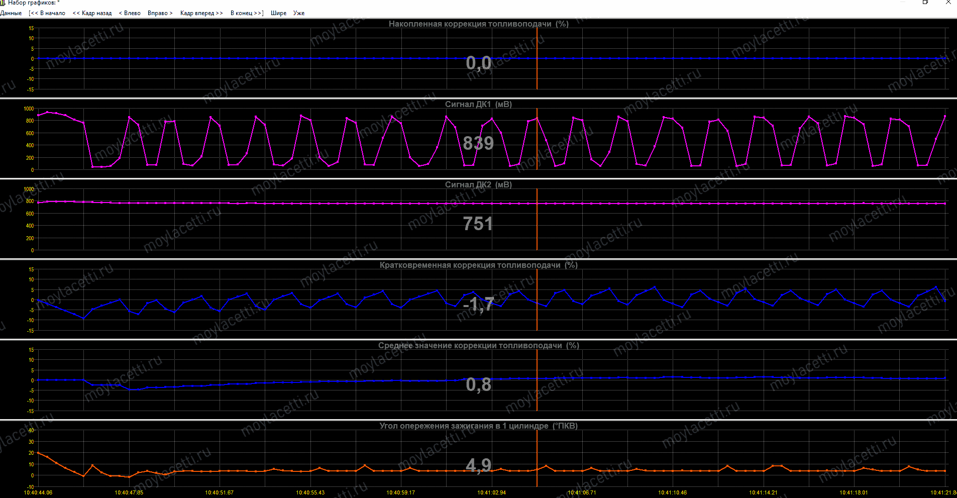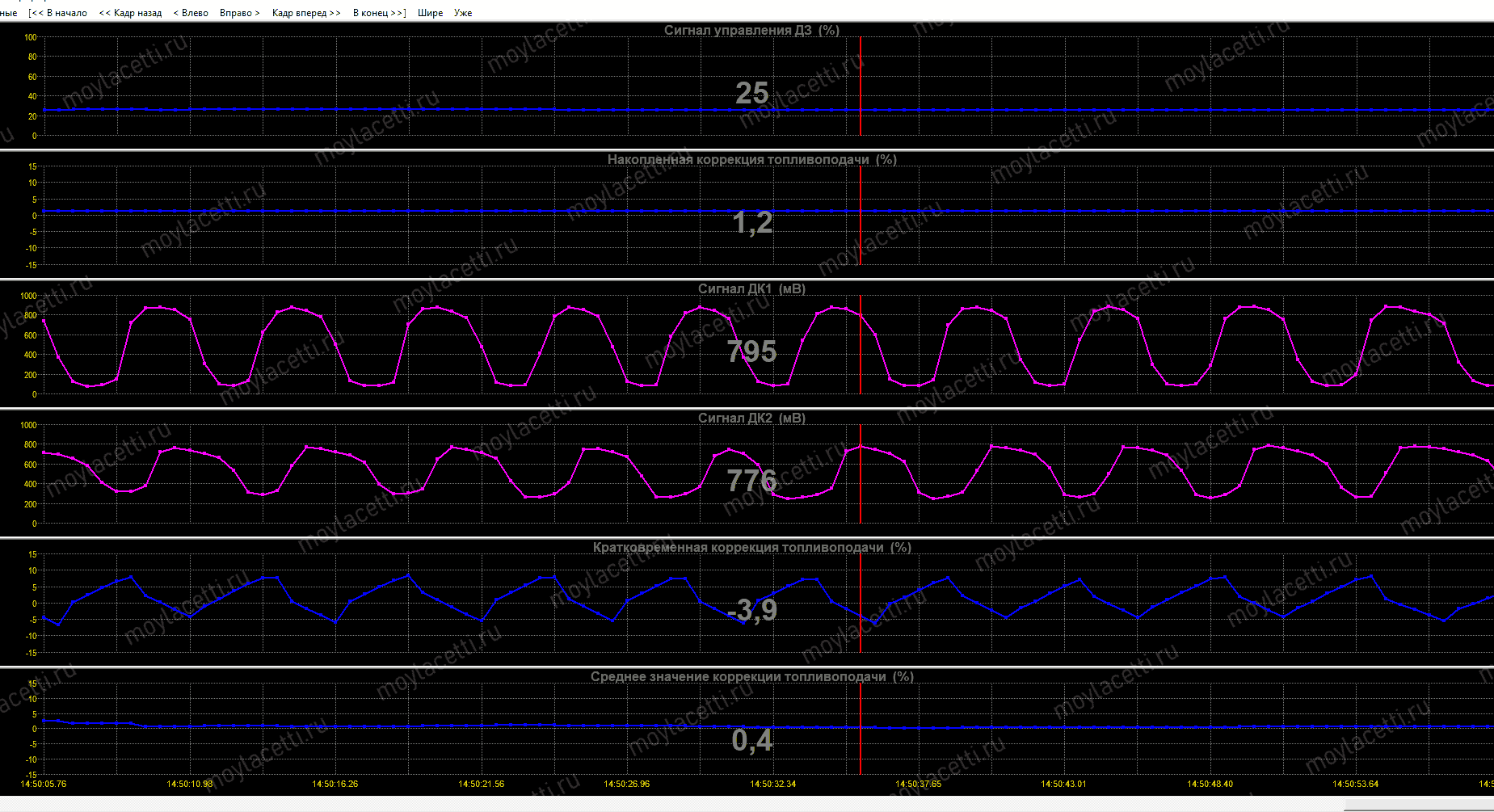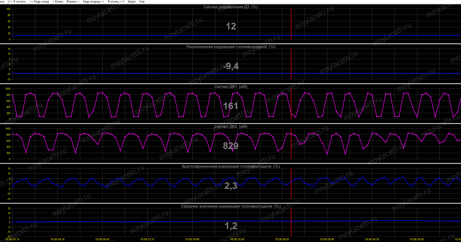 В общем, отрываем диагностическую программу и смотрим за показаниями датчиков кислорода