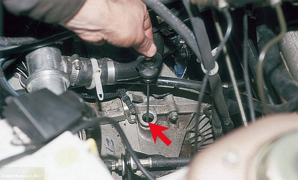 Во-первых, размещен он слишком низко, во-вторых, имеются специальные защитные элементы. Так что придется пользоваться чуть более сложными технологиями. Первая из них основана на сливе через магистраль, расположенную в подкапотном пространстве, для ее реализации придется выполнить следующие действия: