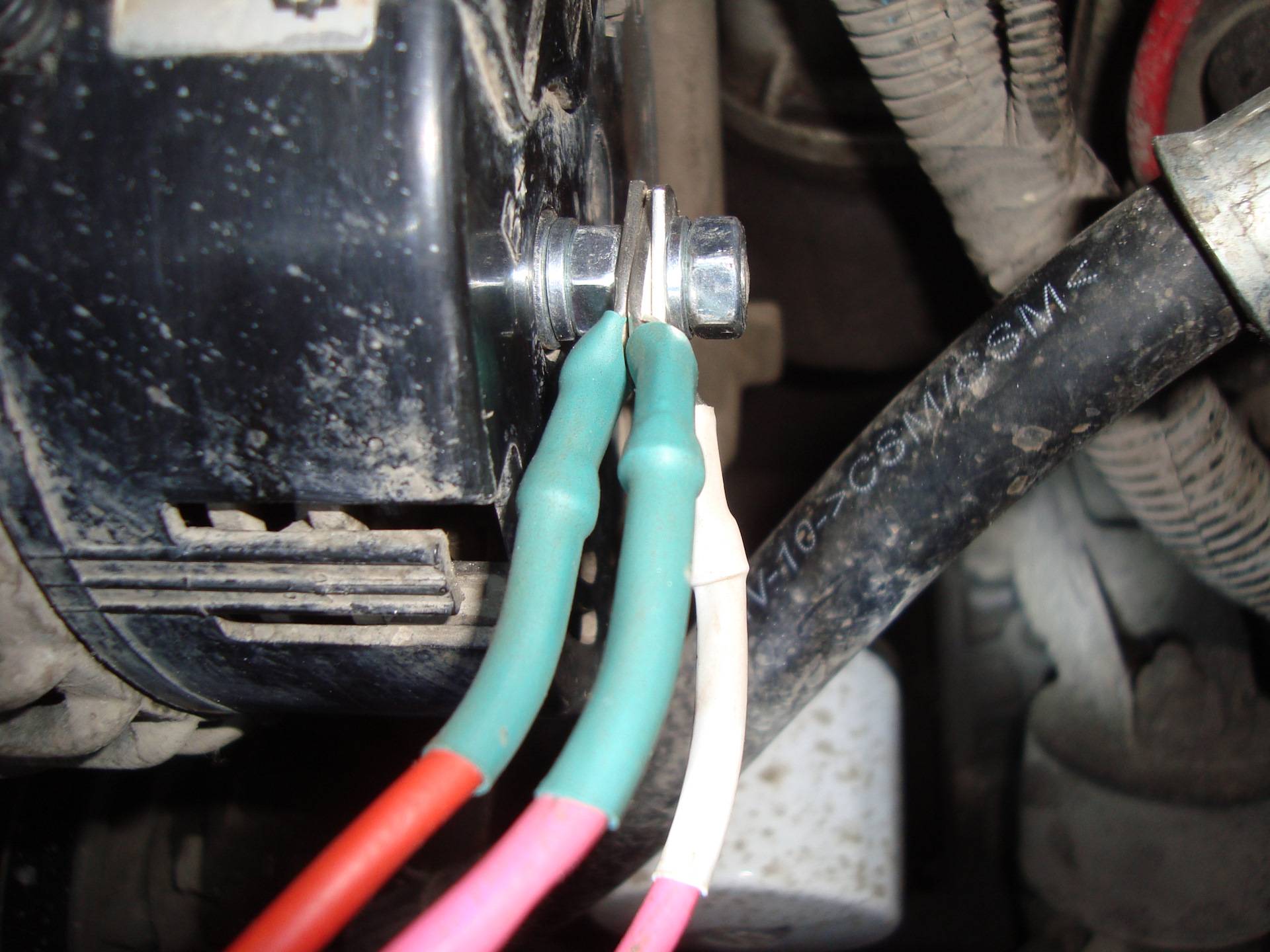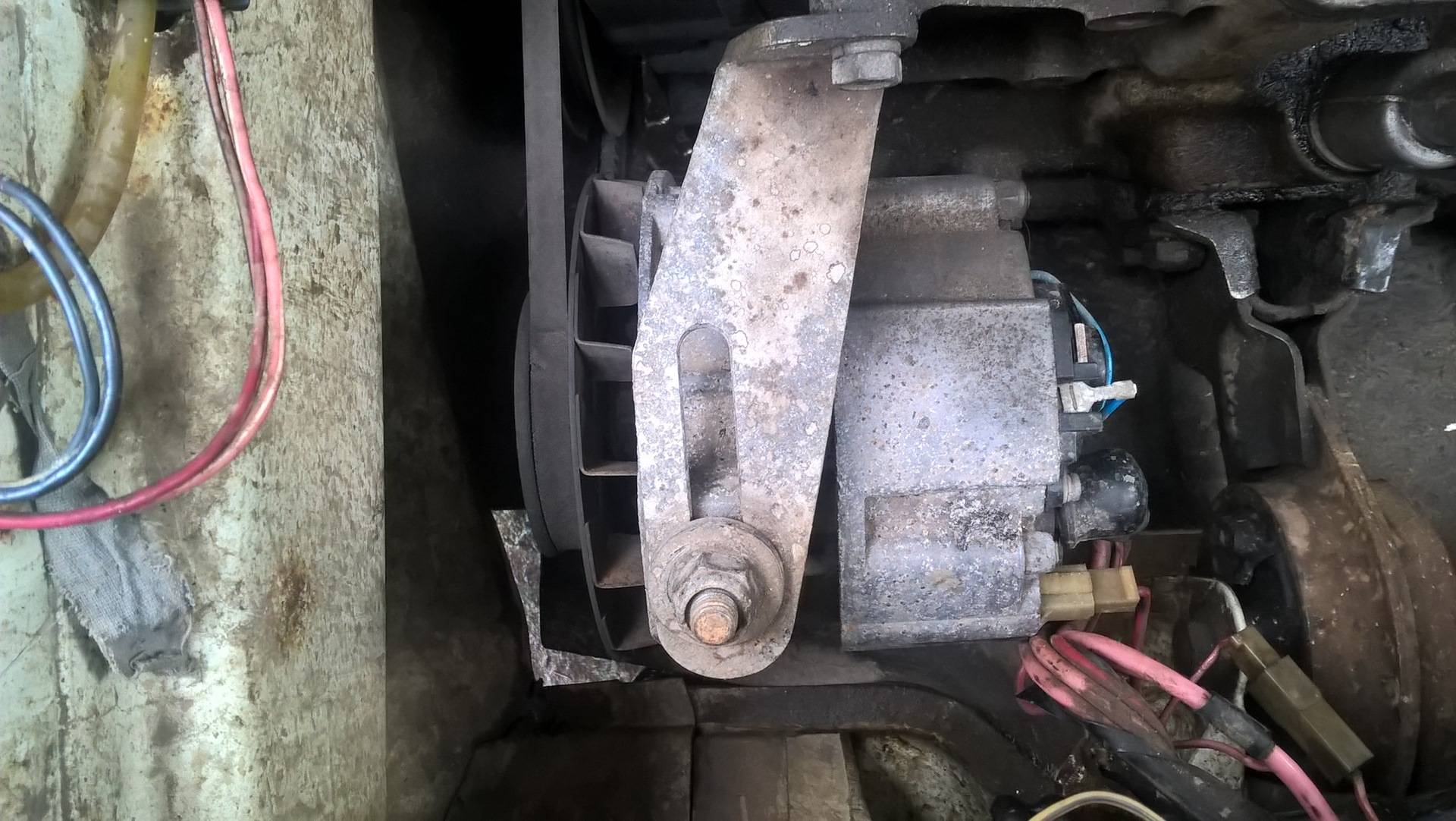 Снизу генератор крепится с помощью гайки и длинного болта, их нужно выкрутить.