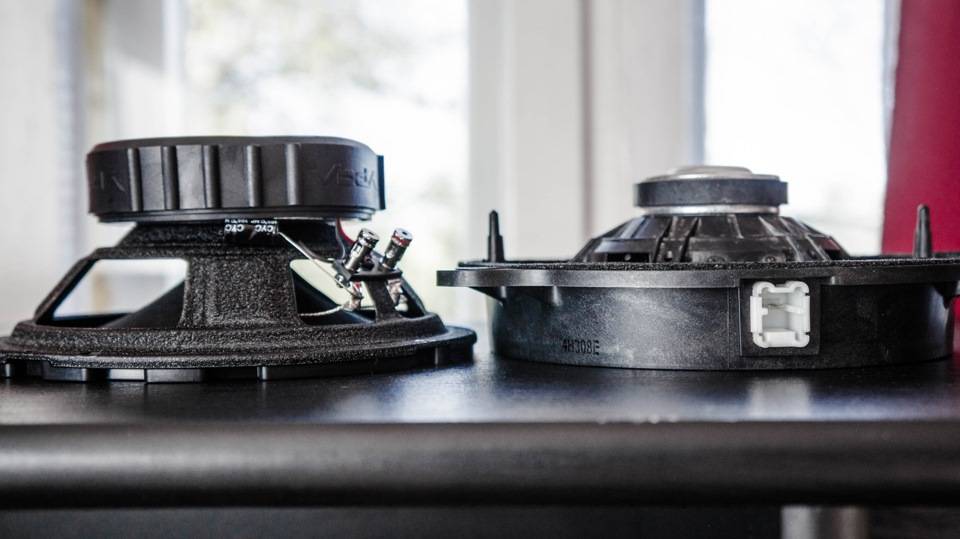 Ну а колонки… ммммм… кучу раз видел их на фотографиях у драйвовчан и смеялся с их виду, но когда взял их в руки я заплакал. Как? Как они вообще играют-то? Шутки ради, у моей жены брелок на ключах весит больше чем они.