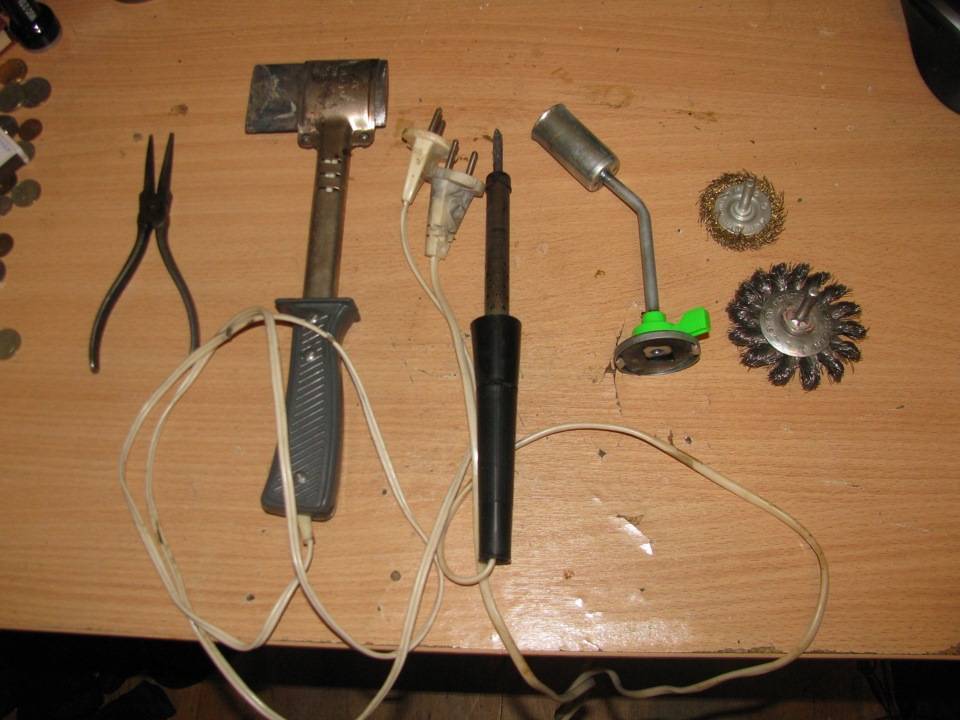 - мощный паяльник на 220 Вольт (лучше использовать молоткового типа мощностью 250 или 200 Ватт, при отсутствии – минимум на 100 Ватт);