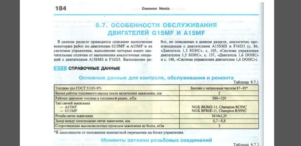 Маркировка свечей зажигания Nexia