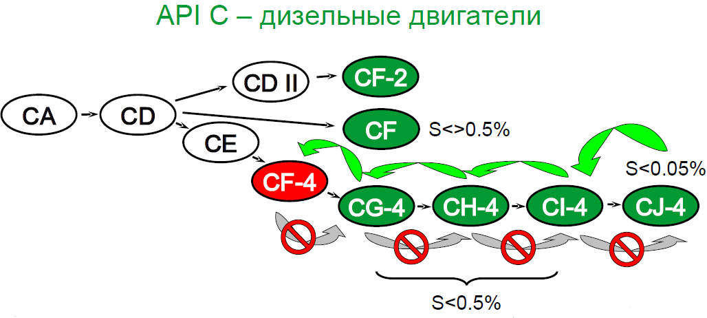 Всего в системе API насчитывается 10 классов для бензиновых агрегатов и 9 классов для дизелей.