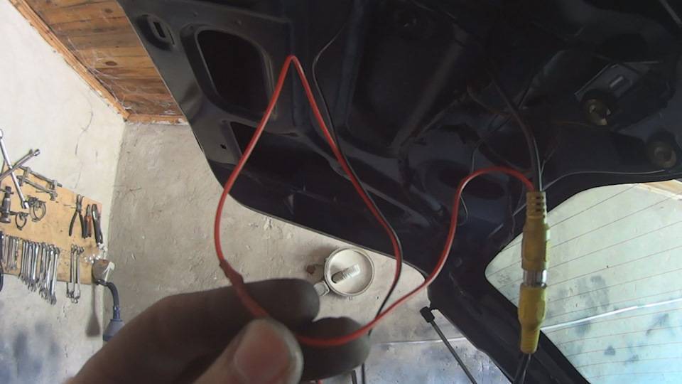 Далее необходимо определить место для ввода проводки в багажный отсек для подключения проводов, обычно для этого используют отверстия, в которые заведена проводка для подсветки номерного знака. Если камера устанавливается в бампер, то проводку необходимо протянуть с обратной стороны бампера к фаре, и далее ввести провода в отверстия под фарой. Вначале лучше попробовать протянуть все провода и установить на место все элементы (камера, подсветка номера, фара) без подключения проводки. После того когда четко понятно как будут проходить провода и им ничего не мешает можно проводить подключение.