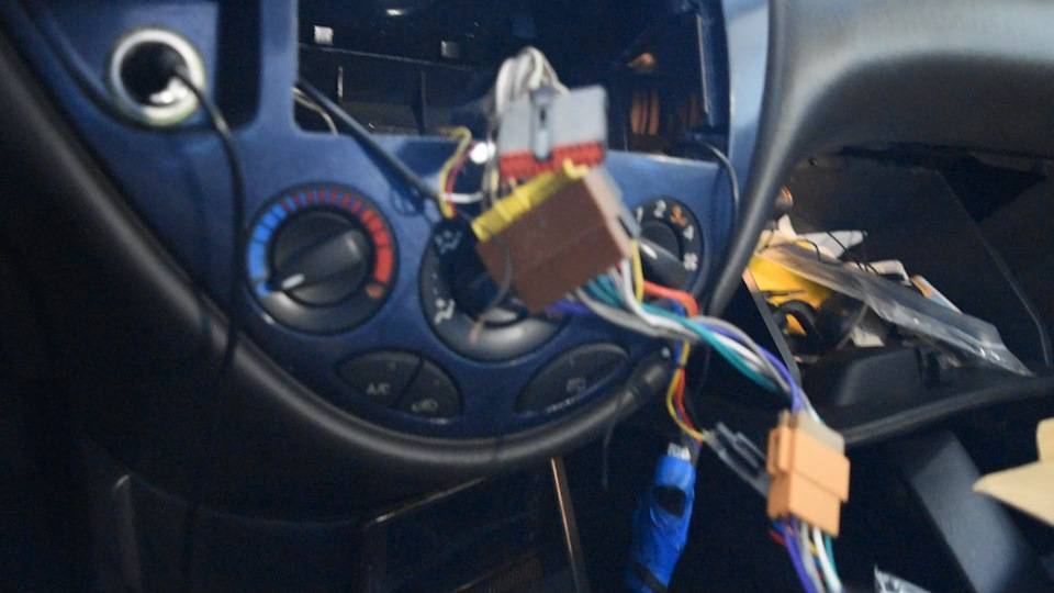 новая магнитола приехала со “свободным” разъемом, поэтому пришлось припаять туда универсальные ISO-разъемы (черная колодка питания и коричневая — динамики):