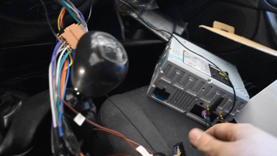 Если камера не оснащается комплектным монитором, или же есть необходимость подключения к магнитоле, то ее придется демонтировать. Так водитель получит доступ к задним разъемам устройства. Кабели, проведенные в салон автомобиля, нужно подключить в соответствующие разъемы на магнитоле (если их нет, то нужно воспользоваться специальными переходниками). Для подключения беспроводных модулей также нужно воспользоваться переходниками. Один устанавливается на камеру, а другой ставится на магнитолу.