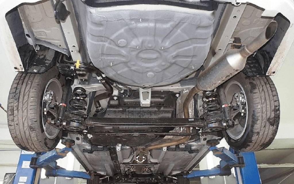 А сзади осталась такая же, как и раньше торсионная (скручивающегося типа) балка с наличием рычажных и пружинных приспособлений, которые вместе с колесами нужны для сглаживания вибраций, исходящих от дорожных неровностей.