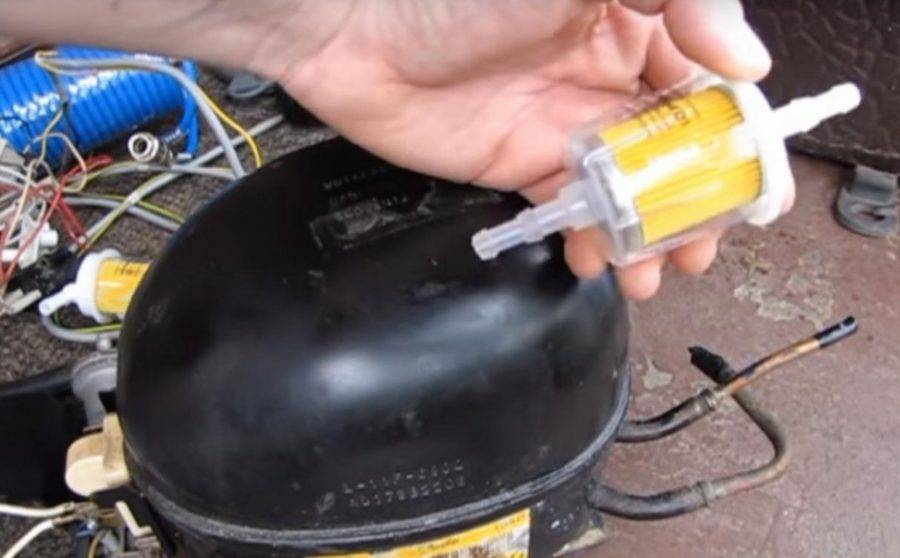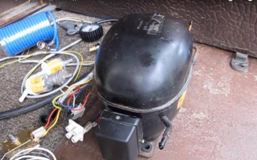 - Компрессор, установленный в холодильнике, снабжается специальным пусковым реле, а также подключенным термостатом. При сборке установки для подкачки эти элементы не нужны, поэтому их следует заранее отключить, не забыв отметить контакты, на реле пуска замкнув их с помощью отрезка провода (обязательно заизолировать).