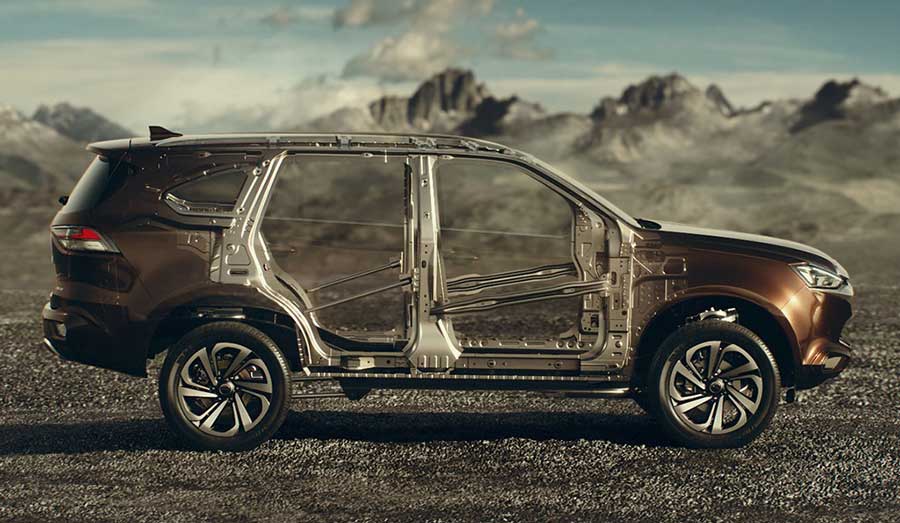 Как и предшествующие версии MU-X, автомобиль 2022 модельного года по-прежнему использует платформу D-Max, но уже нового, третьего поколения пикапа.