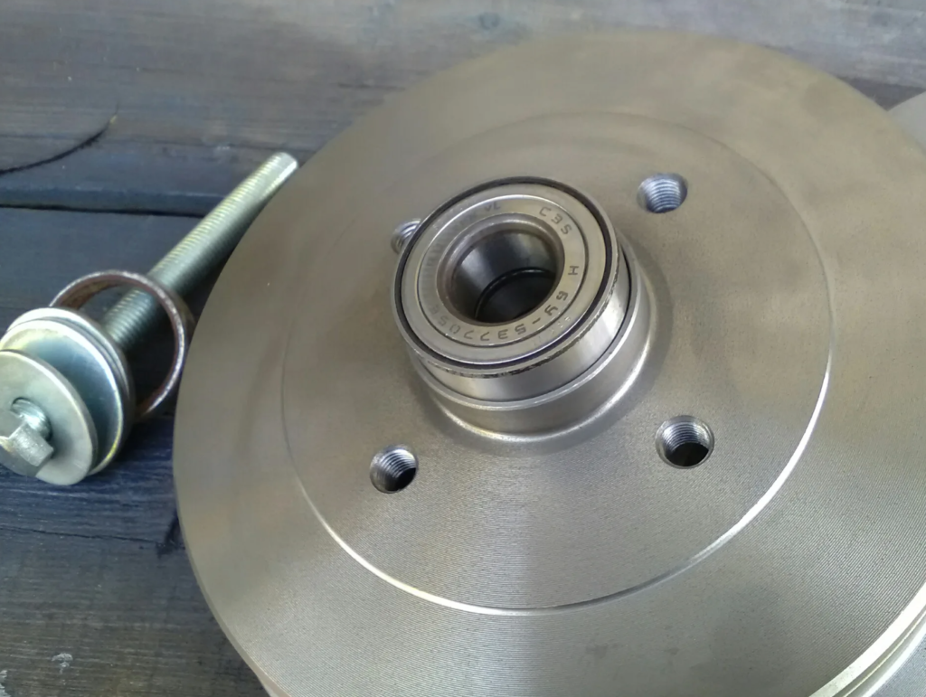 ВАЖНО! Все работы были выполнены ателье Clubturbo, у которого на Драйве есть собственный бортжурнал – Лада Vesta Clubturbo. Некоторые компоненты они изготавливали самостоятельно. В первую очередь, снимается барабан Весты, для чего нужно открутить ступичную гайку, так как ступичный подшипник запрессован непосредственно в барабан