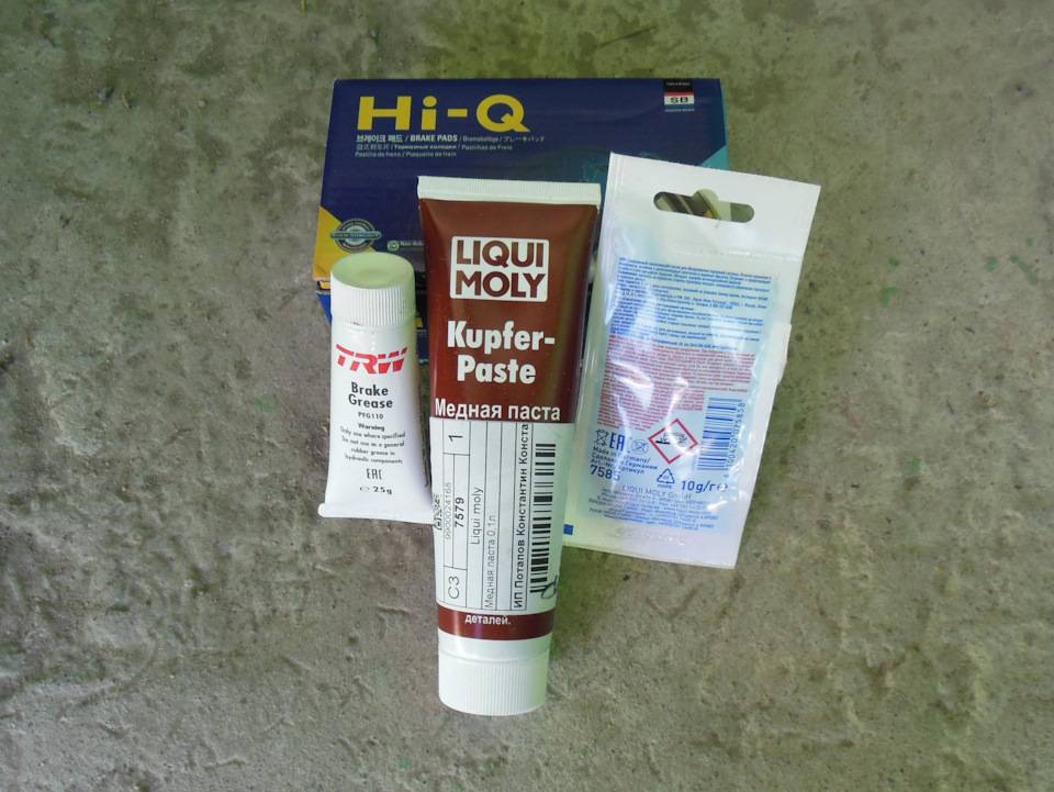 В общем, решил поменять колодки TRW на Sangsin (Hi-Q), заказал:1. Колодки тормозные дисковые Sangsin (арт. SP 1564) – передние;2. Колодки тормозные дисковые Sangsin (арт. SP 1709) – задние;3. Синтетическая смазка для тормозной системы Liqui Moly Bremsen-Anti-Quietsch-Paste (арт. 7585);4. Медная паста Liqui Moly Kupfer-Paste (арт. 7579);5. Смазка пластичная TRW (арт. PFG 110).